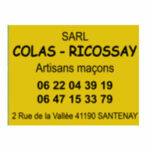 | SARL COLAS-RICOSSAY Artisans maçons 2, rue de la vallée 41190 Santenay Tél. : 06.22.04.39.1 / 06.47.15.33.79 |  |